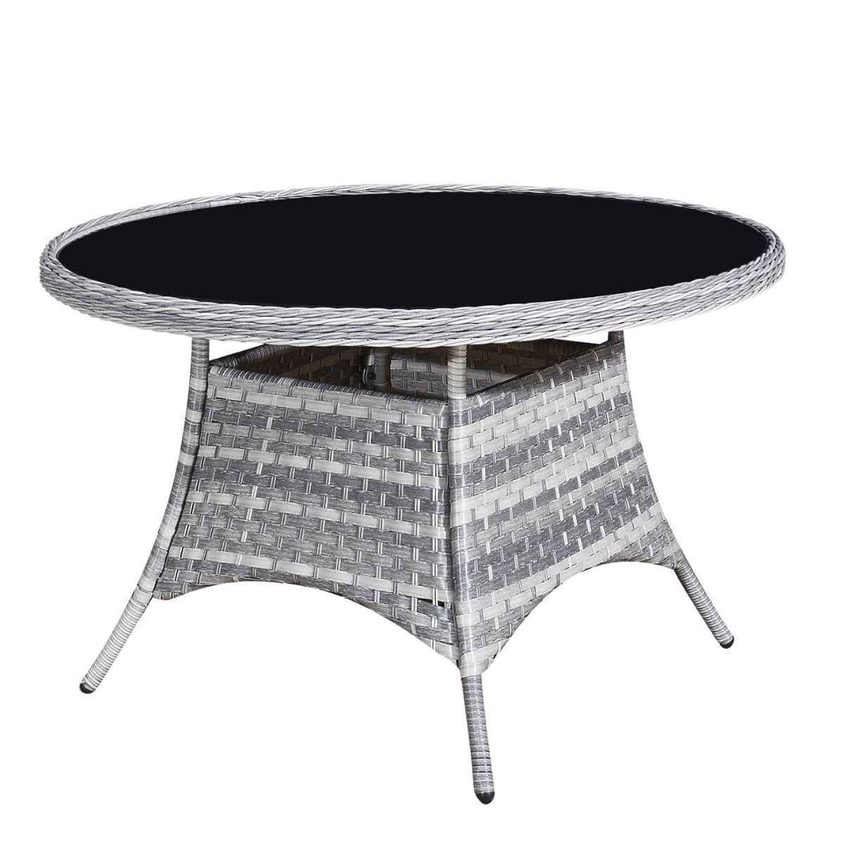 Technorattan Tischmöbel-Set (4 Sessel + runder Tisch) MODERNO hellgrau