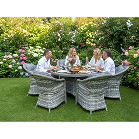 Lukahome.at   »   Gartenmöbel   /   Gartensets   /   Großes Ess-Set aus Technorattan (6 Sessel + Tisch) MODERNO hellgrau