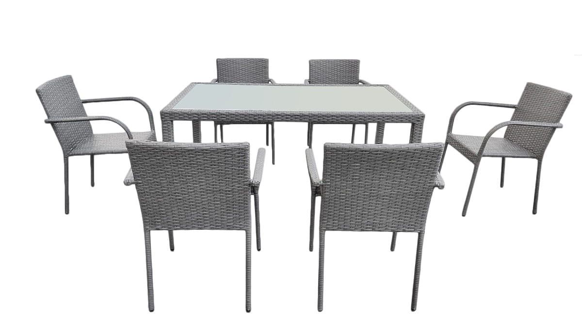 Essgruppe aus Technorattan (Tisch 150x90cm + 6 Stühle) AVVICENTE grau