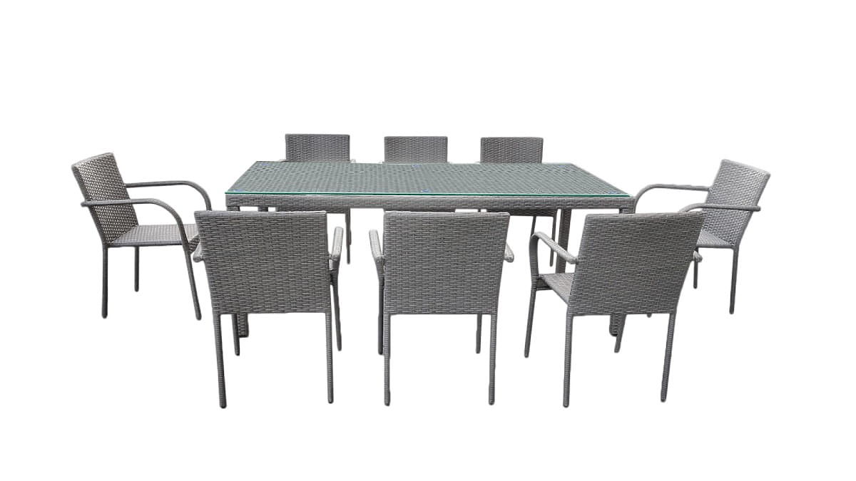 Großes Ess-Set aus Technorattan (8 Stühle + großer Tisch) SOTTILE grau