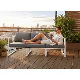 Großes dreisitziges Terrassensofa 204 cm MOSTRARE weißes Aluminium