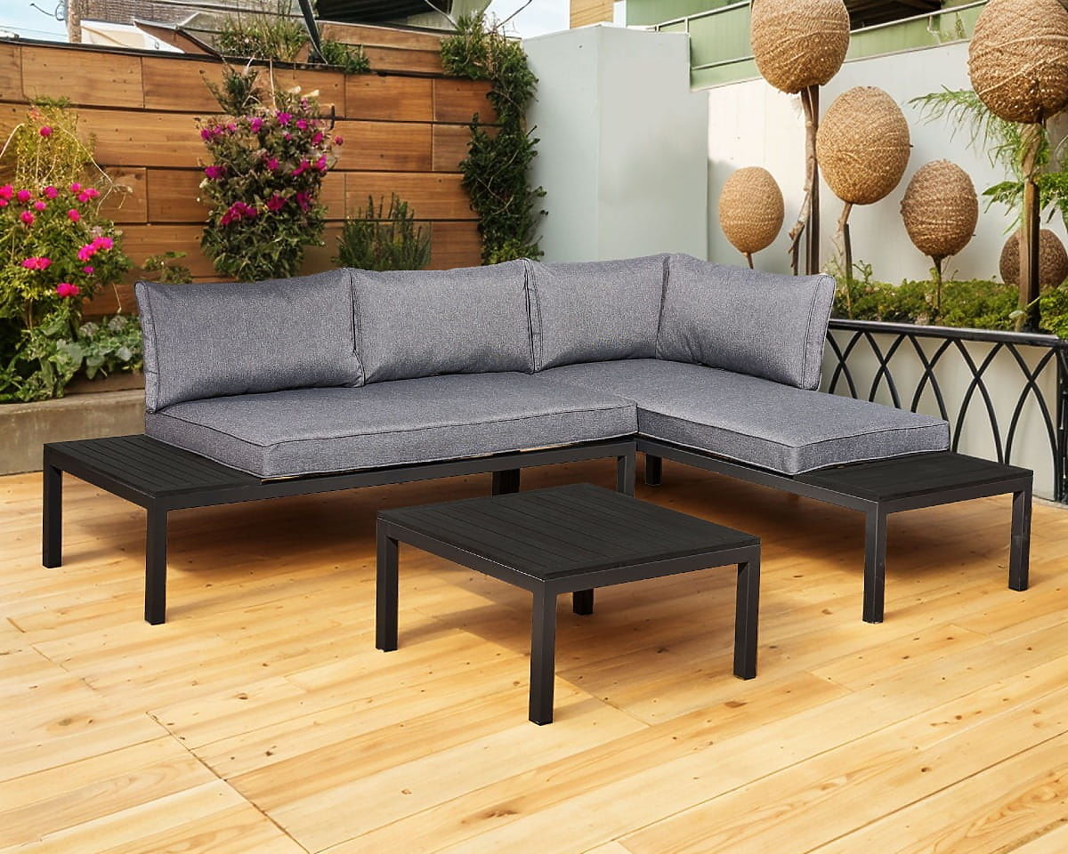 VENTO ist eine Investition in Langlebigkeit und Komfort. Hergestellt aus hochwertigem, wetterbeständigem Stahl, wird dieses Set Ihnen viele Jahre dienen. Weiche Kissen und ergonomische Form sorgen für Komfort bei der Entspannung. Die ideale Wahl für diejenigen, die praktische Lösungen schätzen. Farbe des VENTO-Sets: schwarz Kissenfarbe: grau Möbelkonstruktion: stahl Das Ecksofa ist modular, was eine Anpassung in beliebiger Konfiguration (links/rechts) ermöglicht. Das Set besteht aus 3 Elementen: 2 x Seitenmodul (rechts und links): Breite: 160 cm Tiefe: 67 cm Höhe: 69 cm 1 x Tisch: Länge: 67 cm Breite: 67 cm Höhe: 34 cm Graue Kissen für Sitzflächen und Rückenlehnen sind im Set enthalten (2 Stk. für Sitzflächen, 4 Stk. für Rückenlehnen). Dicke der Sitzkissen: 8 cm. Stellen Sie sich Gartenmöbel vor, die in jeder Hinsicht Ihre Erwartungen übertreffen – von der Haltbarkeit bis zum Design. Dies ist BELLO GIARDINO, wo jedes Detail zählt und Luxus auf Funktionalität trifft: Zeitlose Qualität: Unser synthetisches Rattan garantiert, dass die Möbel jahrelang halten, ohne an Schönheit oder Haltbarkeit zu verlieren. Wetterbeständigkeit: Unsere Möbel trotzen den härtesten Wetterbedingungen, von sengender Sonne bis zu eisigen Wintern, und bleiben dabei stets schön. Luxuriöser Komfort: Dicke, weiche Kissen laden zur Entspannung ein und bieten Komfort, den man anderswo schwer findet. Leichtigkeit und Stabilität: Die Aluminiumkonstruktion vereint das Beste aus beiden Welten – sie ist leicht, aber äußerst stabil. Design, das beeindruckt: Jedes Element unserer Möbel wurde mit Blick auf Ästhetik und Funktionalität entworfen, um in jede Umgebung zu passen. Ob Sie Minimalismus lieben oder reiche, elegante Arrangements schätzen, unsere Möbel erfüllen Ihre Erwartungen, die über die Grenzen gewöhnlicher Funktionalität und Ästhetik hinausgehen. Wir stellen sicher, dass selbst die anspruchsvollsten Kunden dem Komfort und Stil von BELLO GIARDINO nicht widerstehen können. Machen Sie Ihren Garten, Ihre Terrasse oder Ihren Balkon zu einer Oase der Entspannung und Eleganz, die Sie sich schon immer gewünscht haben. Warten Sie nicht, entdecken Sie BELLO GIARDINO noch heute und verwandeln Sie Ihre Außenbereiche in Orte, von denen Sie immer geträumt haben.