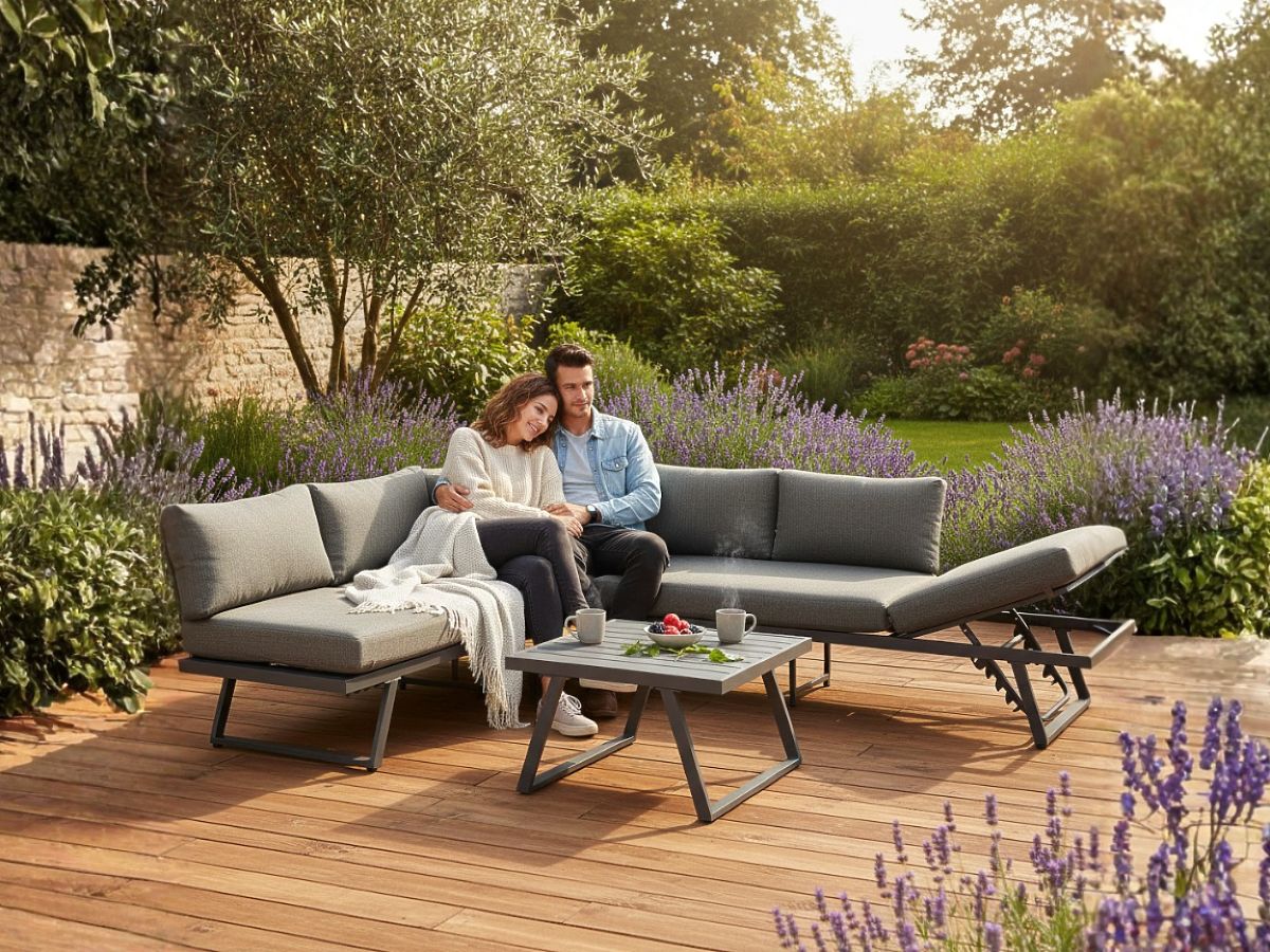 Garten-Ecksofa aus Aluminium mit Tisch RADIOSO mit verstellbarer Rückenlehne