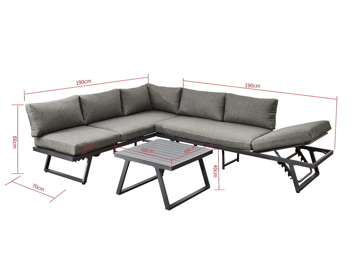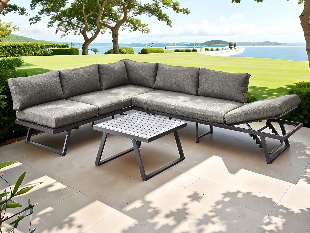 Lukahome.at   »   Gartenmöbel   /   Gartensets   /   Garten-Ecksofa aus Aluminium mit Tisch RADIOSO mit verstellbarer Rückenlehne