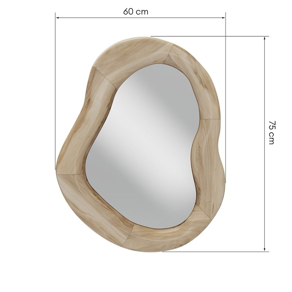 Lukahome.at » Dekoration / Spiegel / Hängespiegel im Holzrahmen Lia 75x60 cm, organische Form, unregelmäßige Form, natur