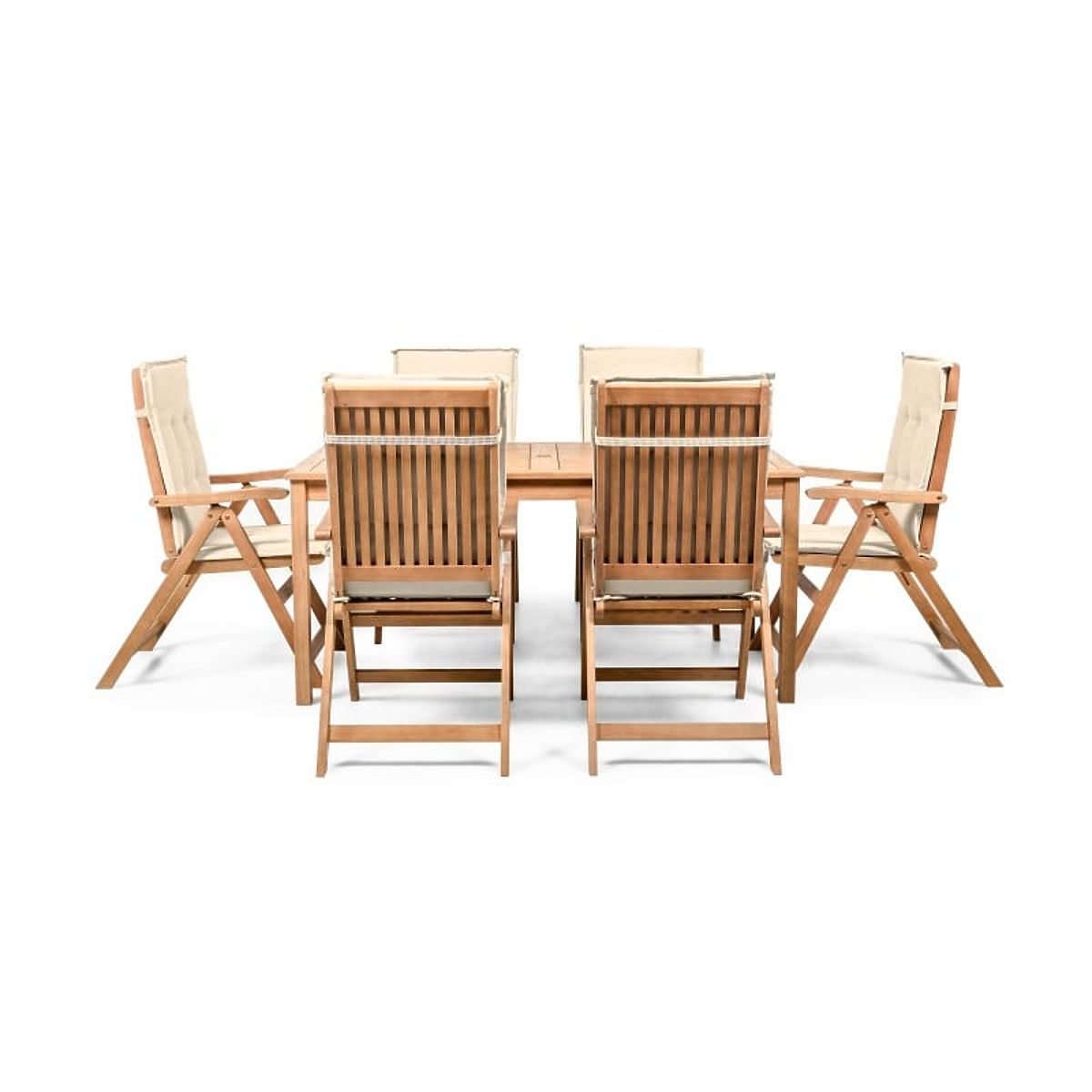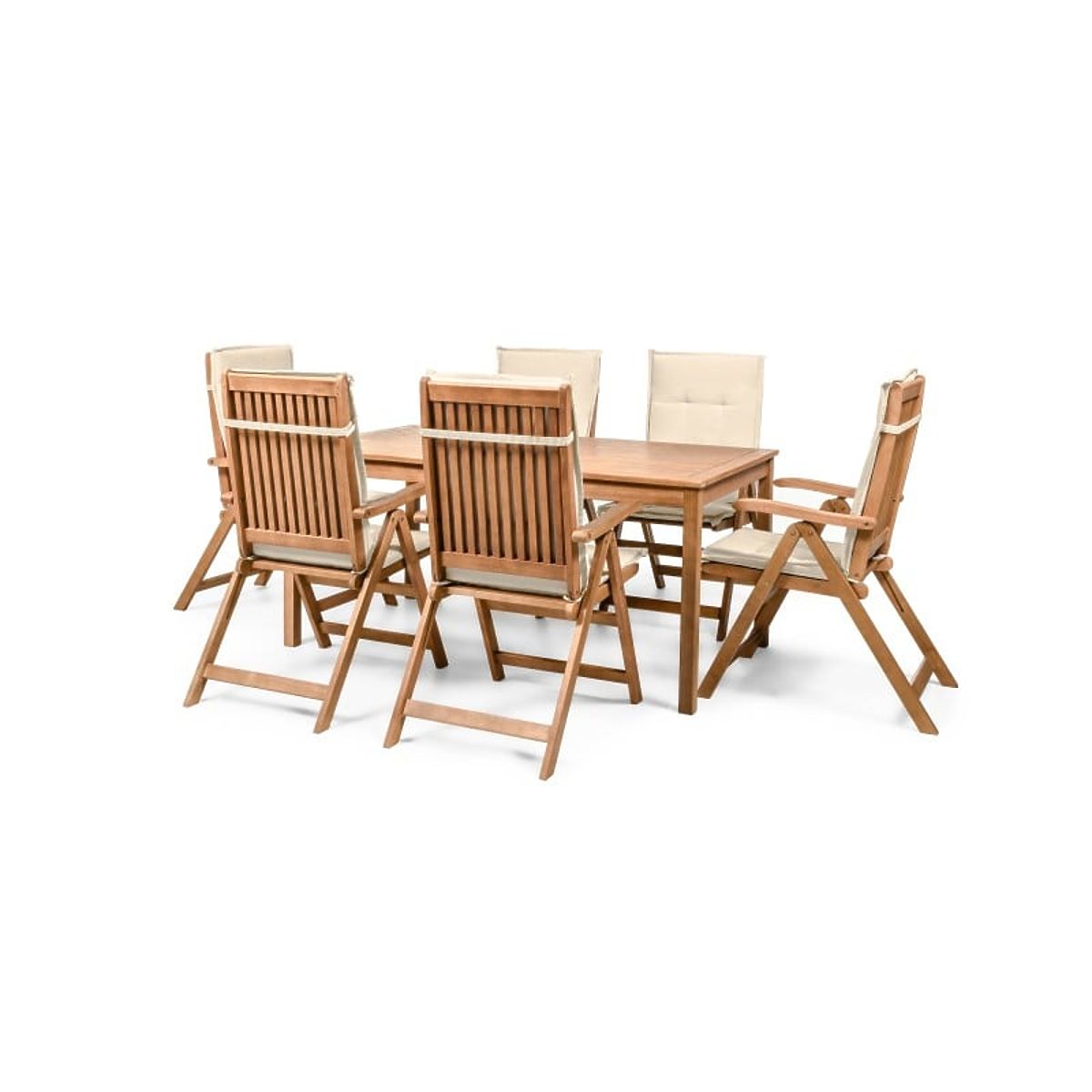 Lukahome.at » Gartenmöbel / Gartensets / Gartenset Familis Tisch 160 cm + 6 Stühle mit verstellbaren Rückenlehnen und cremefarbenen Kissen, H