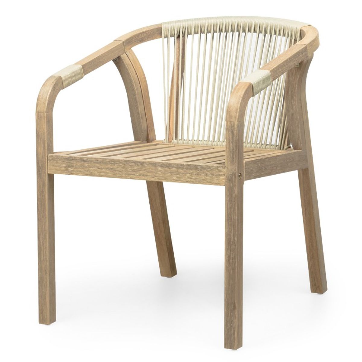 Gartenstuhl Castello aus Akazienholz mit Teak-Optik und beigem Seilrücken. .. mehr
