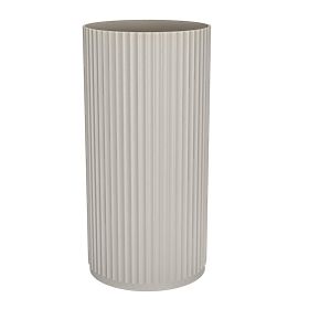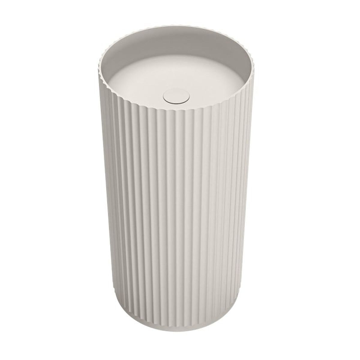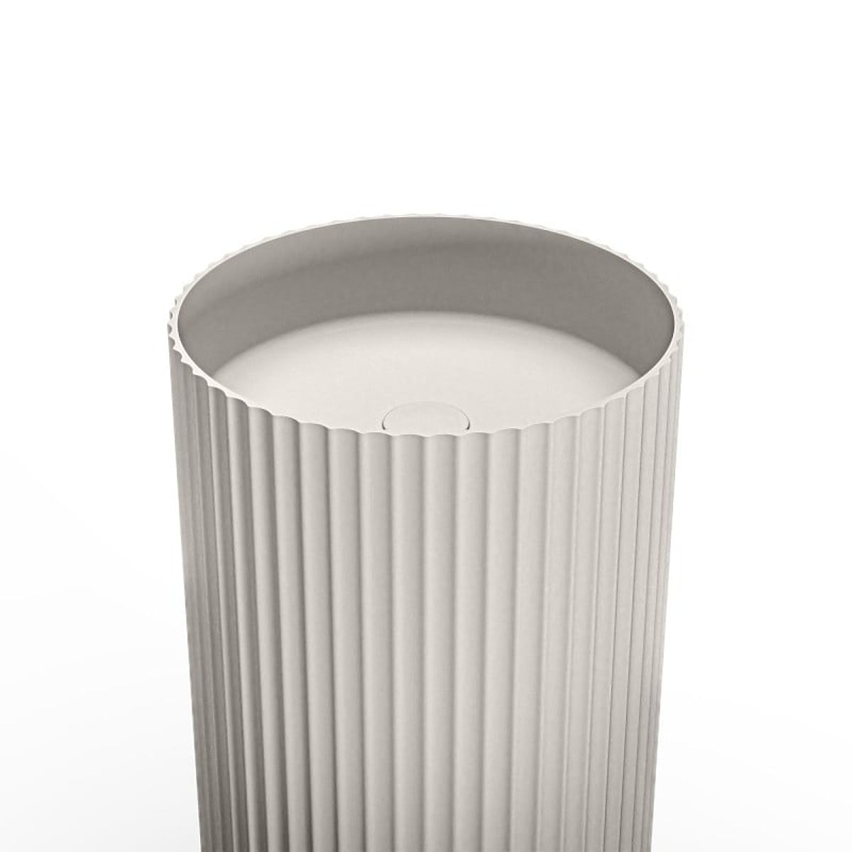 Freistehendes hellgraues Waschbecken mit gerillter Oberfläche. .. mehr