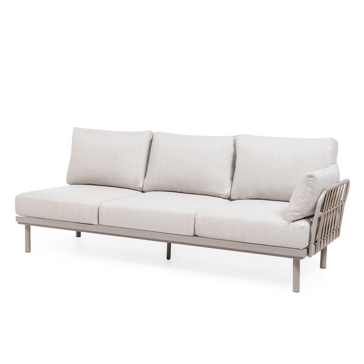 Ecksofa Amarello mit Aluminiumrahmen und beigegrauem Geflecht. .. mehr