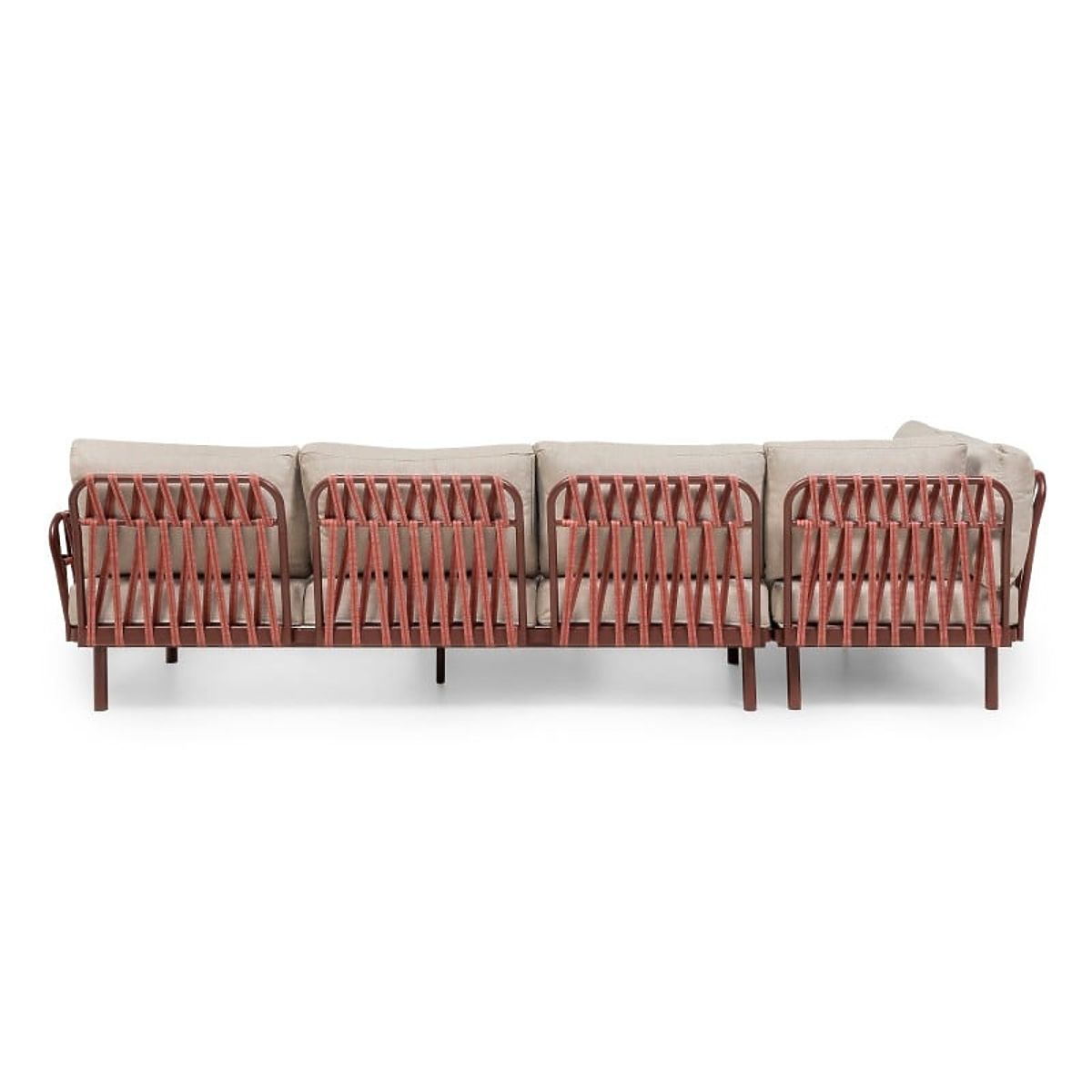 Ecksofa Amarello mit Aluminiumrahmen und bordeauxbraunem Geflecht. .. mehr