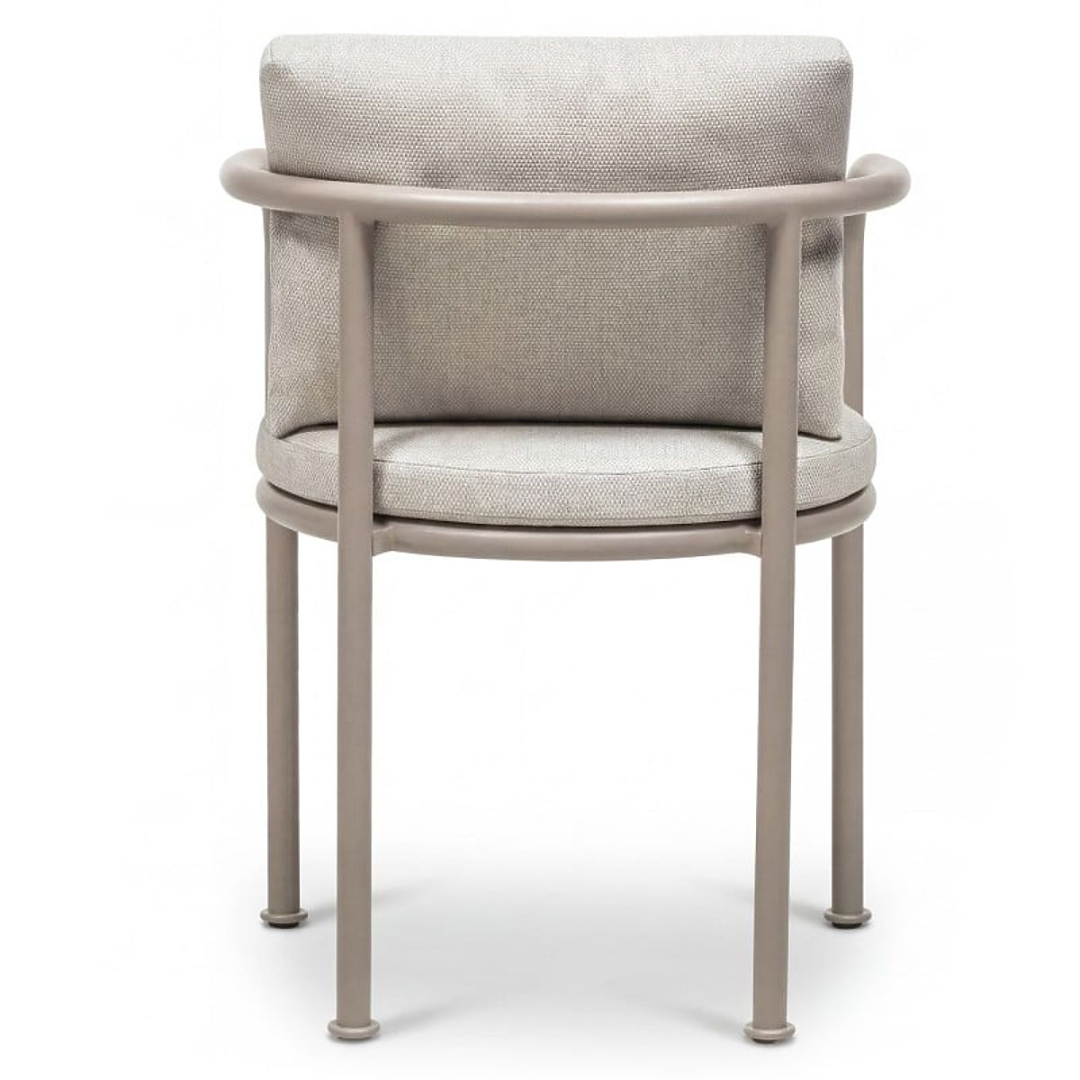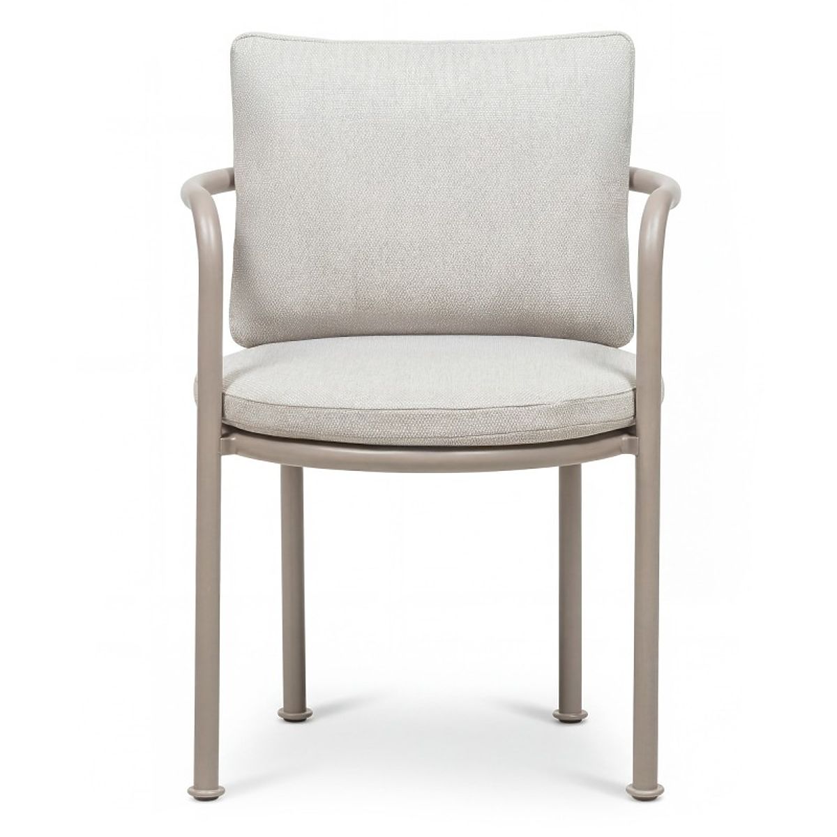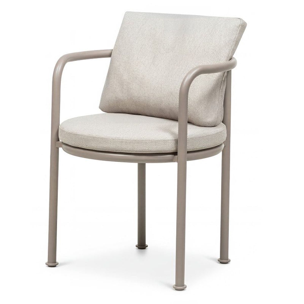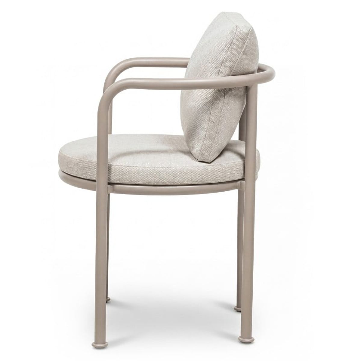 Abgerundeter Gartenstuhl aus Aluminium mit hellbeigen Kissen. .. mehr