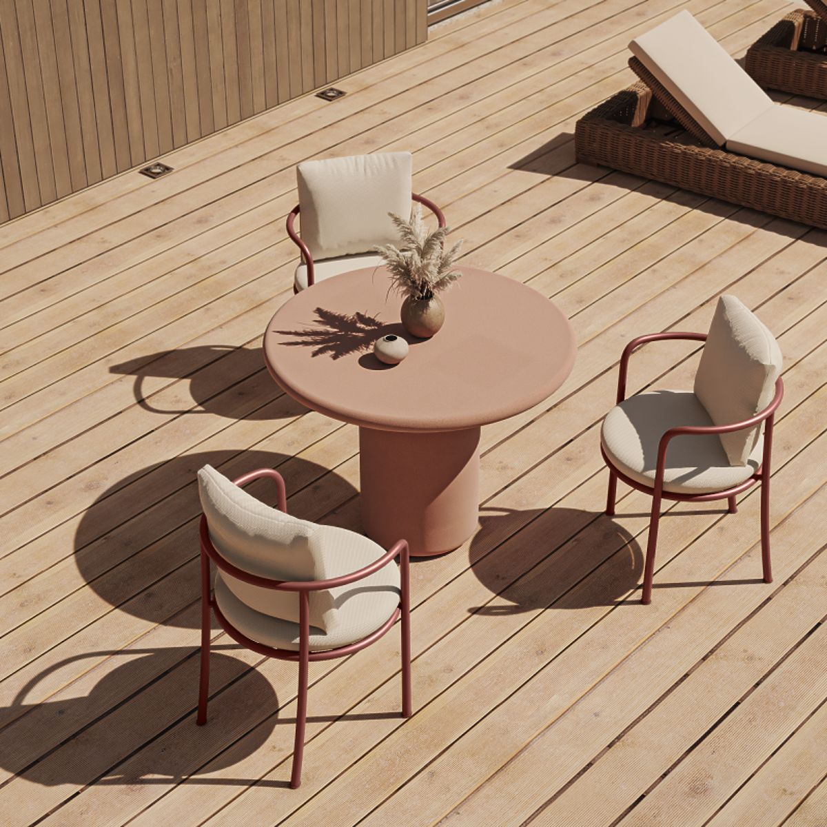 Der Tisch Vibonis in Terrakotta-Farbe ist eine wahre Zierde für jeden Garten. Elegant, langlebig, perfekt abgestimmt auf die natürliche Umgebung, bringt er Leichtigkeit und Harmonie in den Raum. Eine ideale Wahl für moderne Arrangements.