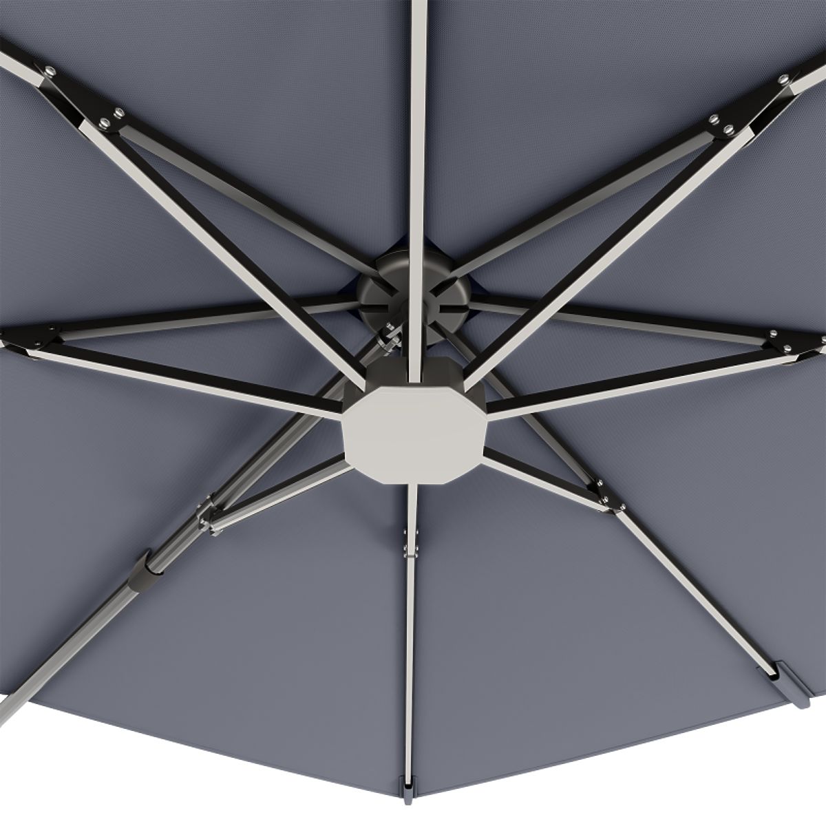 Der Sonnenschirm Shade Deluxe bietet Ihnen volle Kontrolle über Ihre Entspannung – die 360°-Drehung und die Neigungsverstellung sorgen für Schatten genau dort, wo Sie ihn benötigen. Die solarbetriebene LED-Beleuchtung ermöglicht es Ihnen, den Abend in angenehmem Licht zu genießen, während die robuste Konstruktion und der strapazierfähige Bezug Komfort und Langlebigkeit für viele Jahre garantieren.