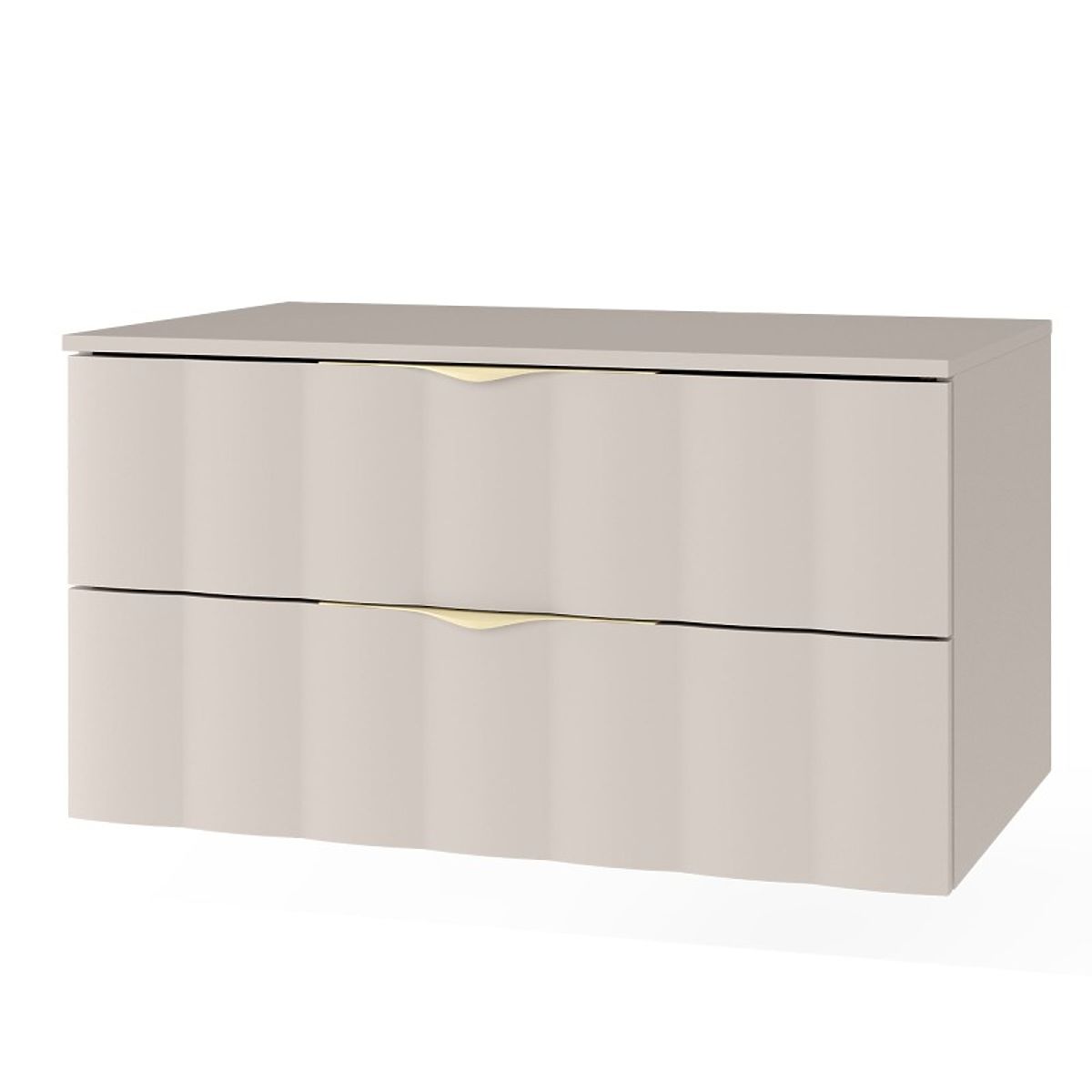 Lukahome.at » Badezimmer und Toilette / Badezimmerschränke / Waschtischunterschrank Omi 80 cm, gewelltes Frontpanel, goldene Griffe, kaschmirbeige