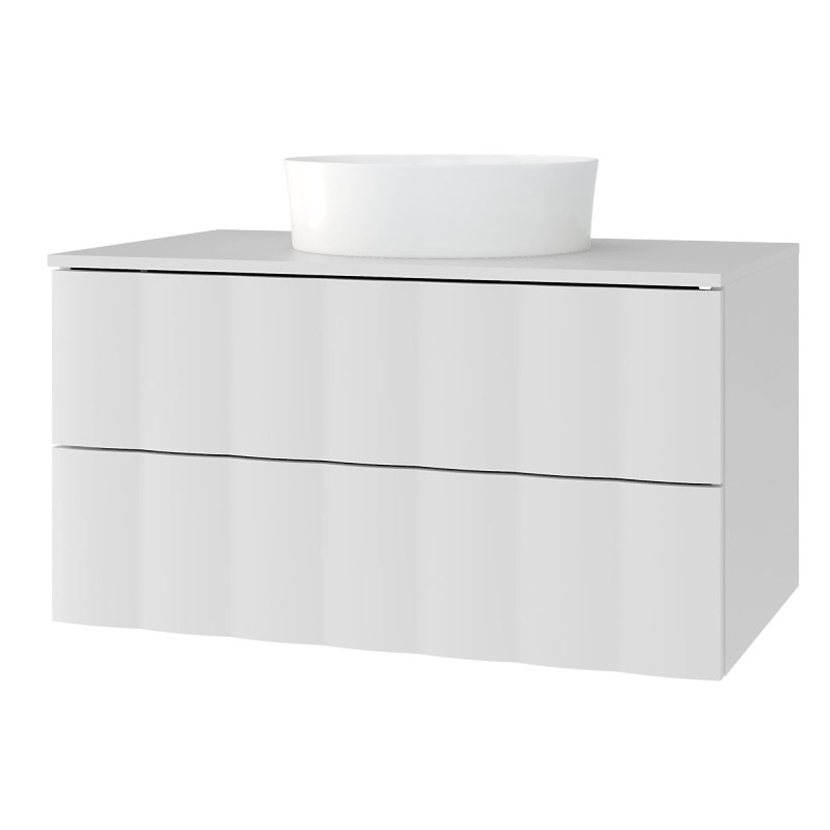 Unterschrank Grita mit gewelltem Frontpanel und Soft-Close-Schubladen. .. mehr