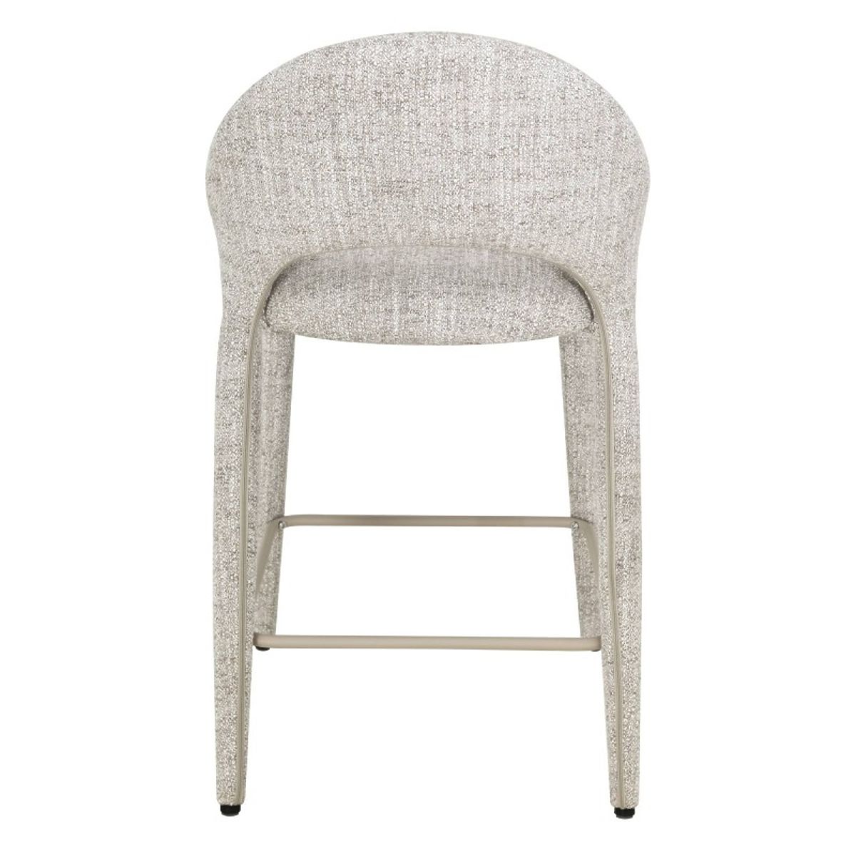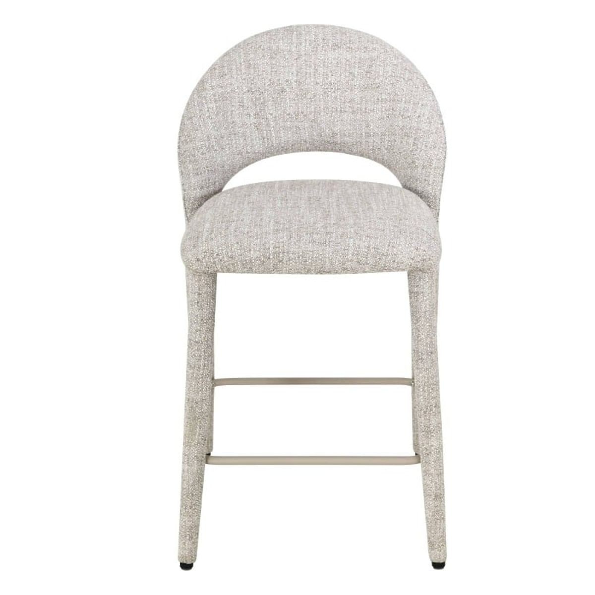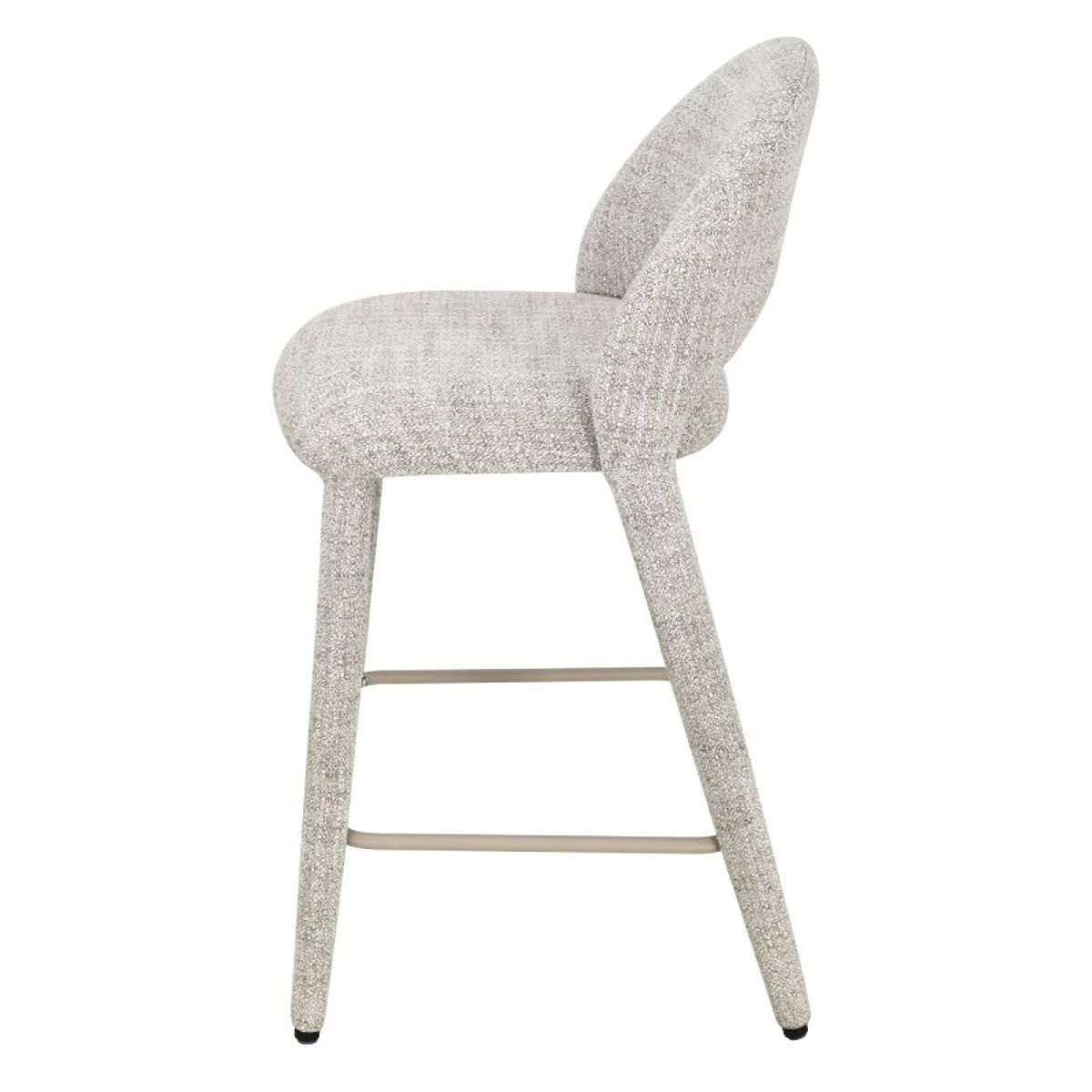 Barhocker Ella mit creme-braunem Stoff und abgerundeter Rückenlehne. .. mehr