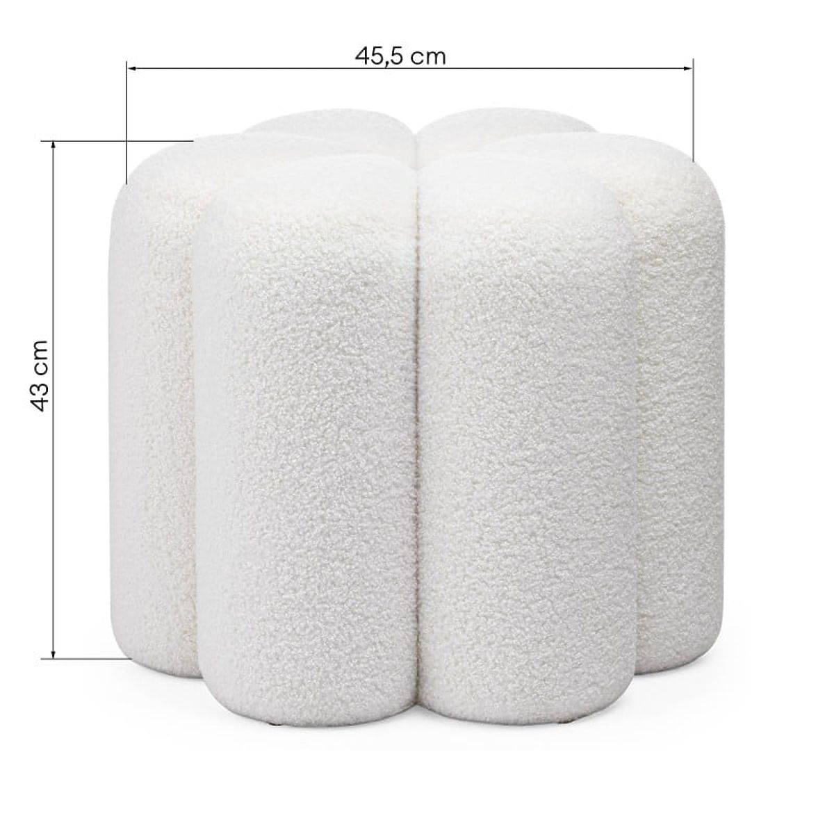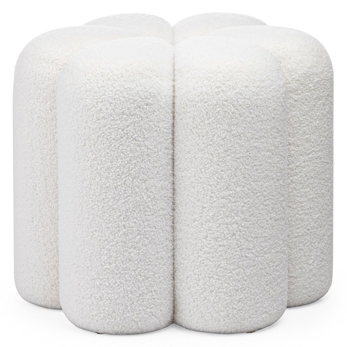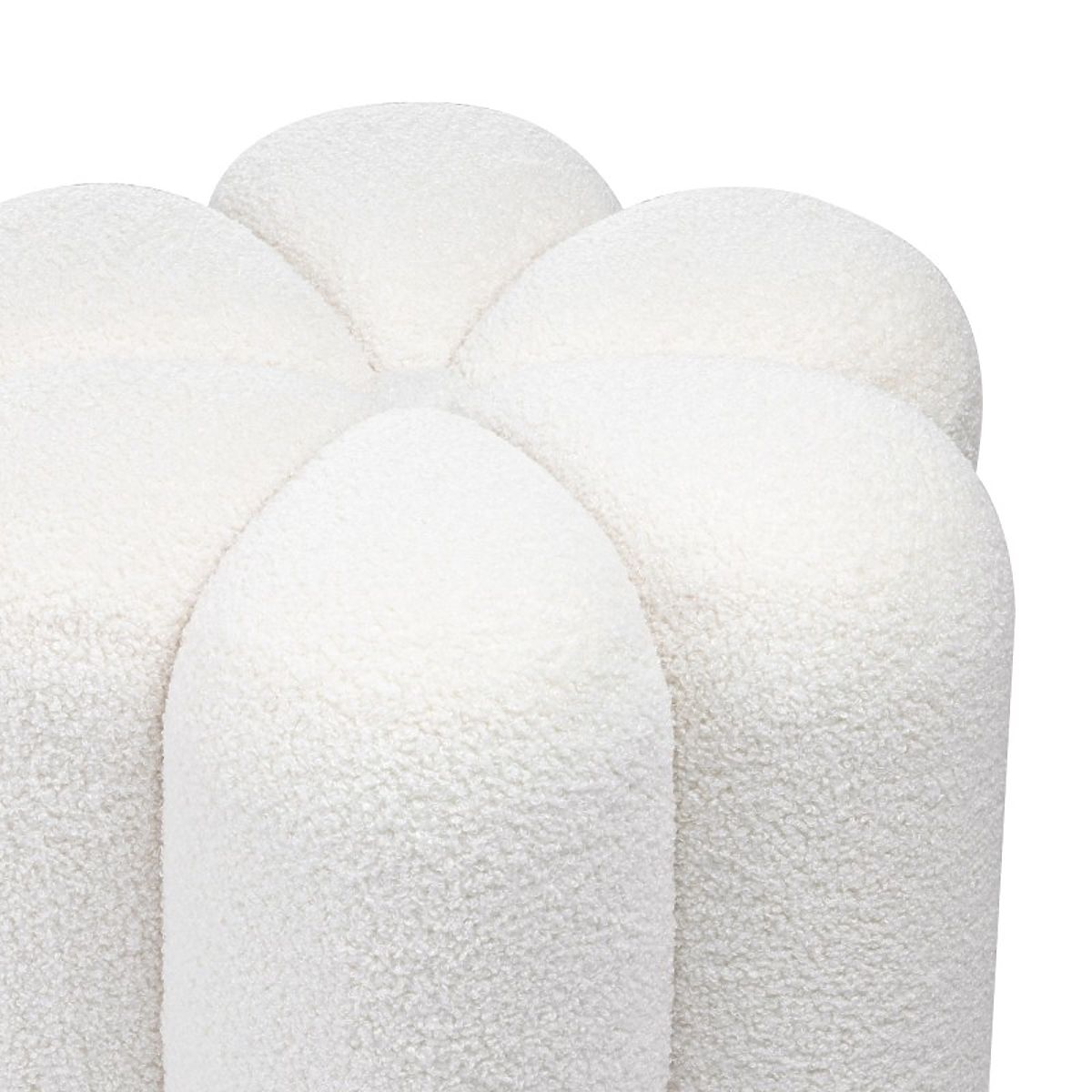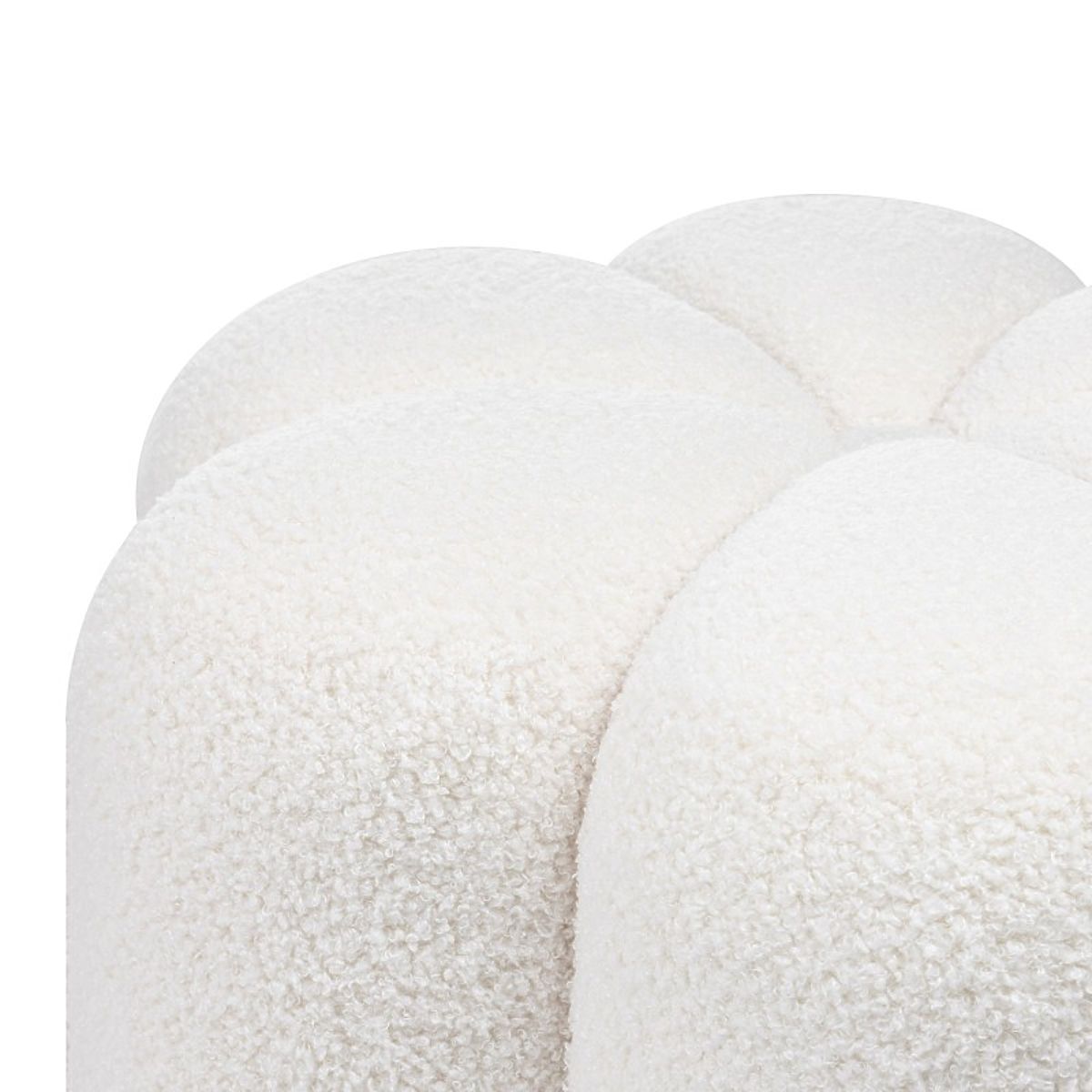 Weißer Bouclé-Pouf Quad mit abgerundeter Form. .. mehr