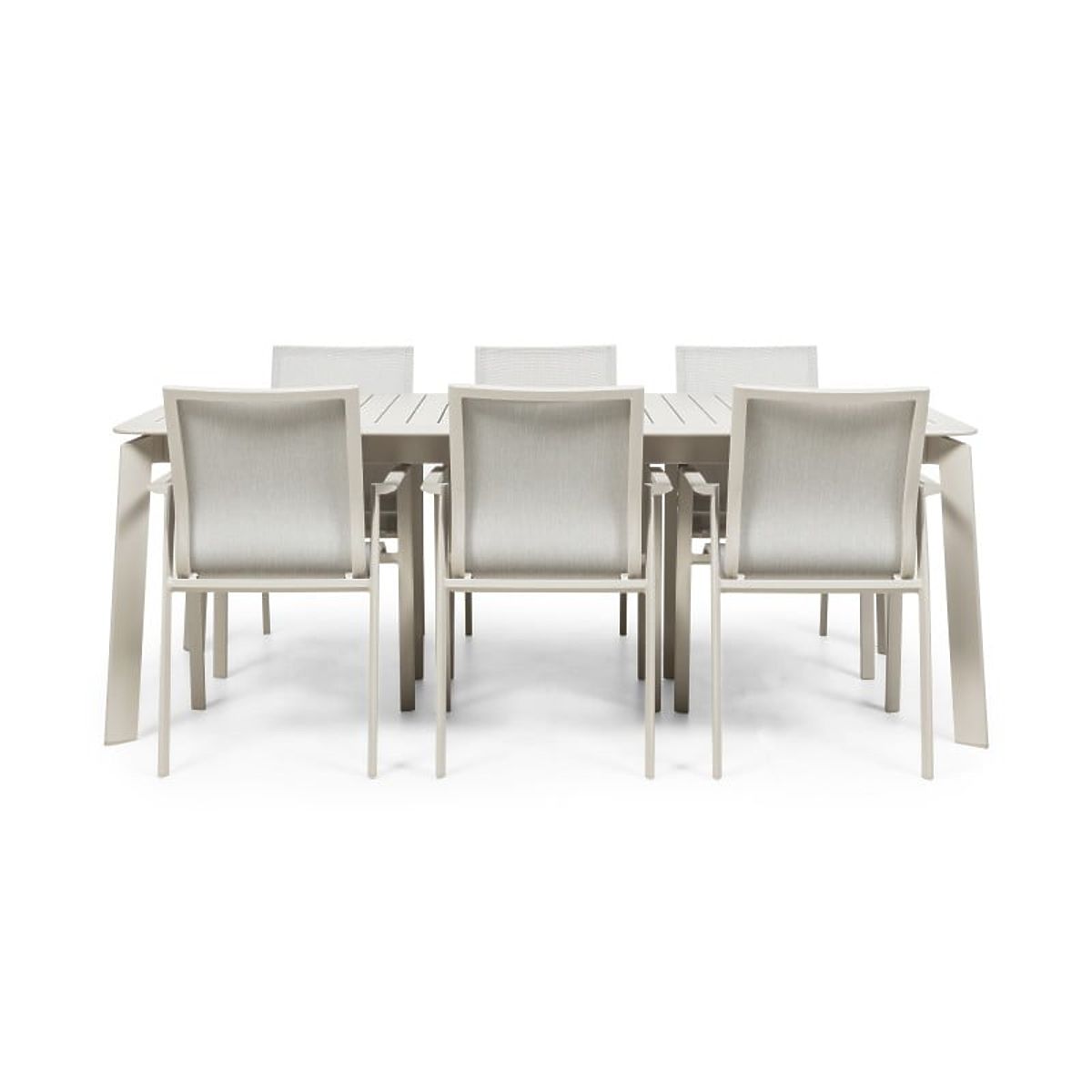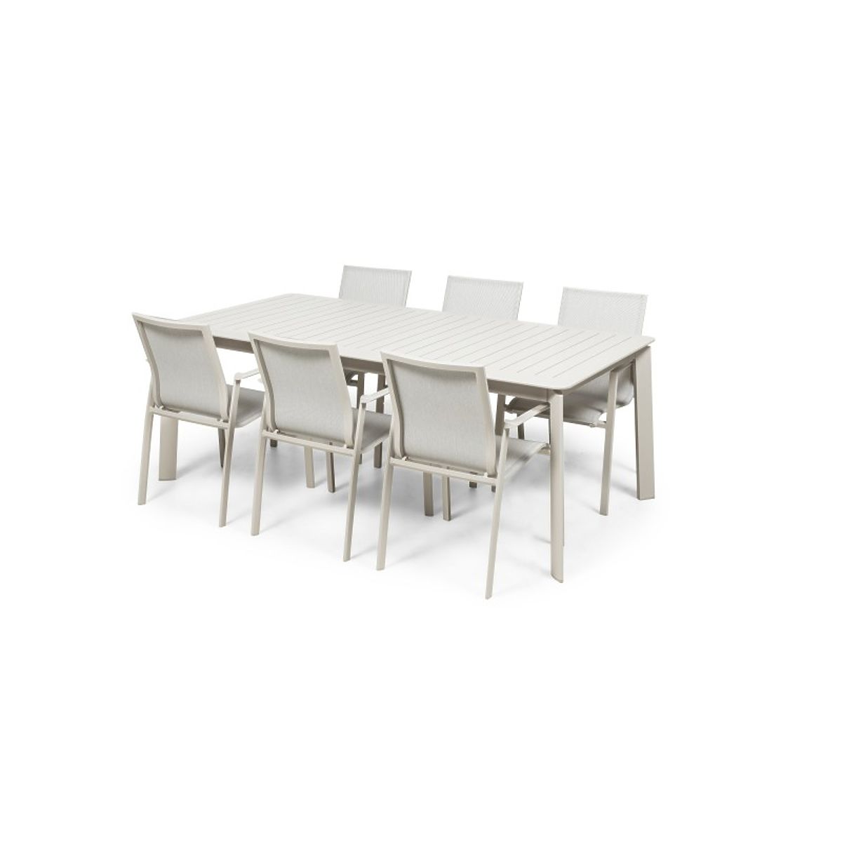 Lukahome.at » Gartenmöbel / Gartensets / Gartenset Canelli, ausziehbarer Tisch 205-286 cm + 6 Stühle, Aluminium, hellbeige