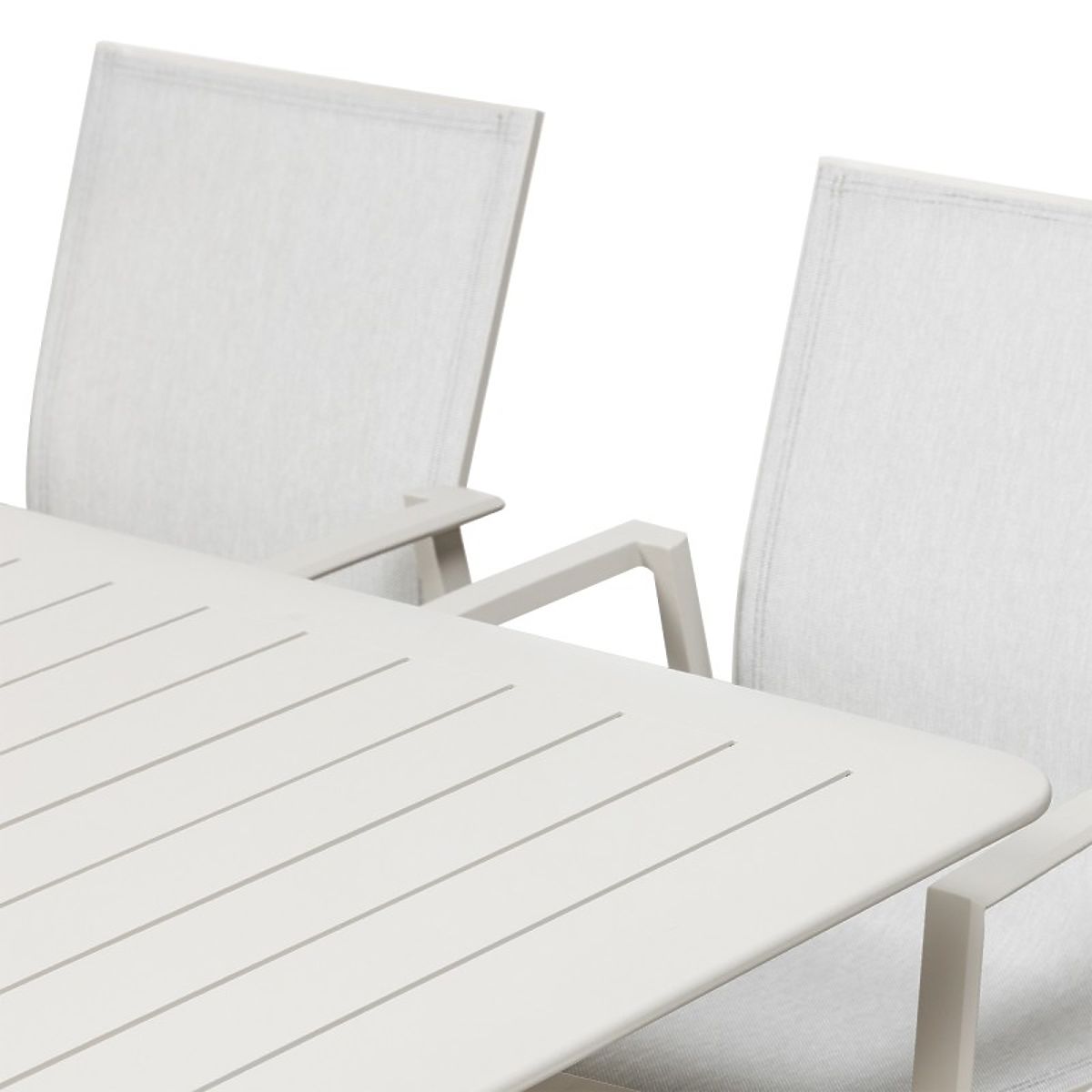 Canelli ist ein Gartenset, das mit Blick auf moderne Räume und komfortable Entspannung entworfen wurde. Die Aluminiumkonstruktion in einem sanften Beigeton kombiniert Eleganz mit Langlebigkeit und bewährt sich hervorragend bei wechselnden Wetterbedingungen. Dank der Ausziehfunktion des Tisches schaffen Sie leicht Platz für größere Treffen und gemeinsame Momente an der frischen Luft.