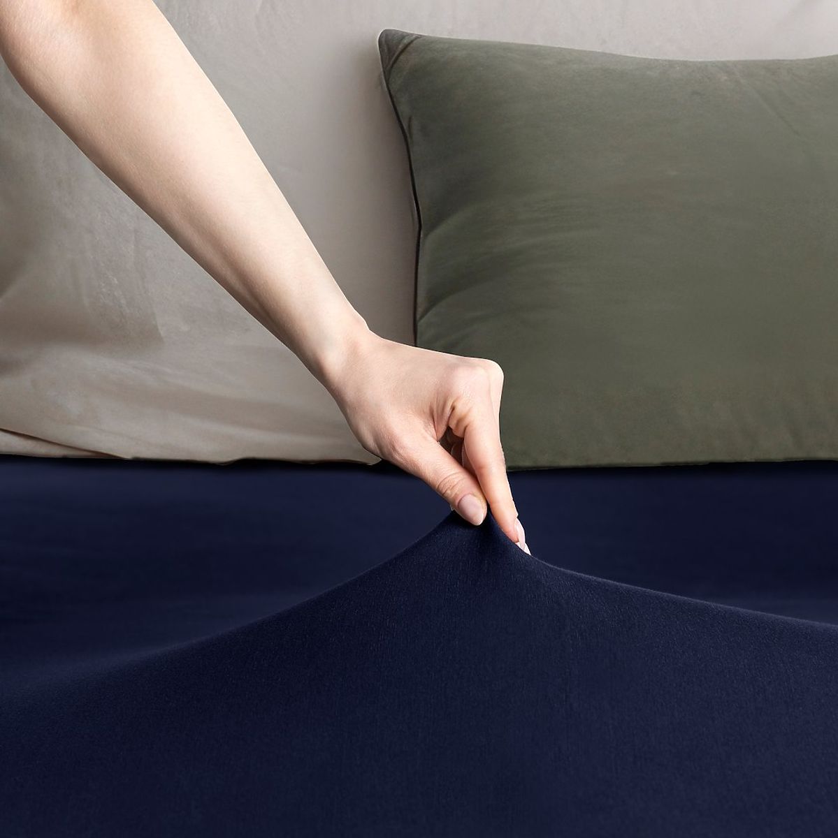 Marineblaues Jersey-Spannbetttuch 220-240x220 cm aus 100% Baumwolle. .. mehr