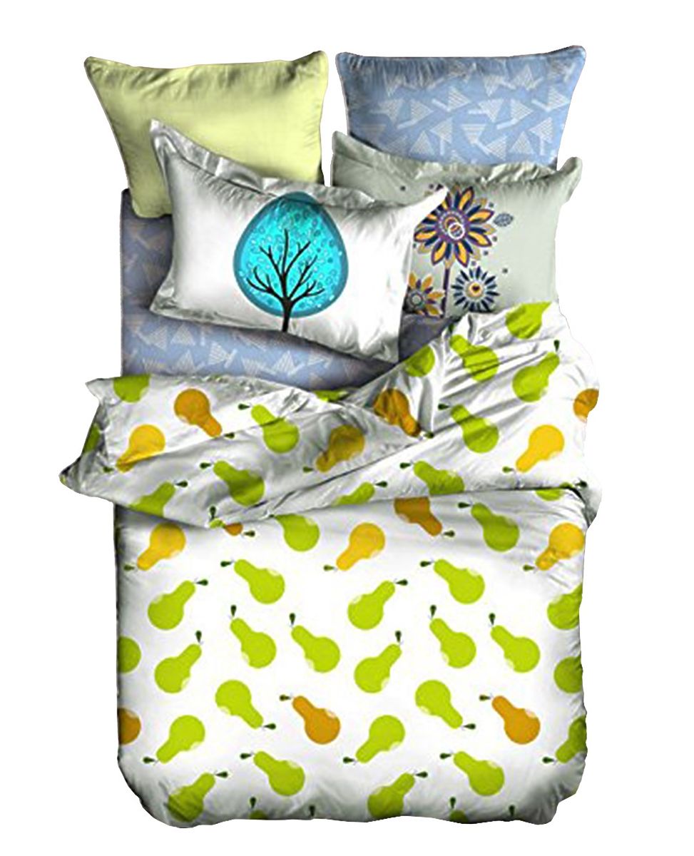Grüne Bettwäsche mit Pflanzenmotiv und Reißverschluss. .. mehr