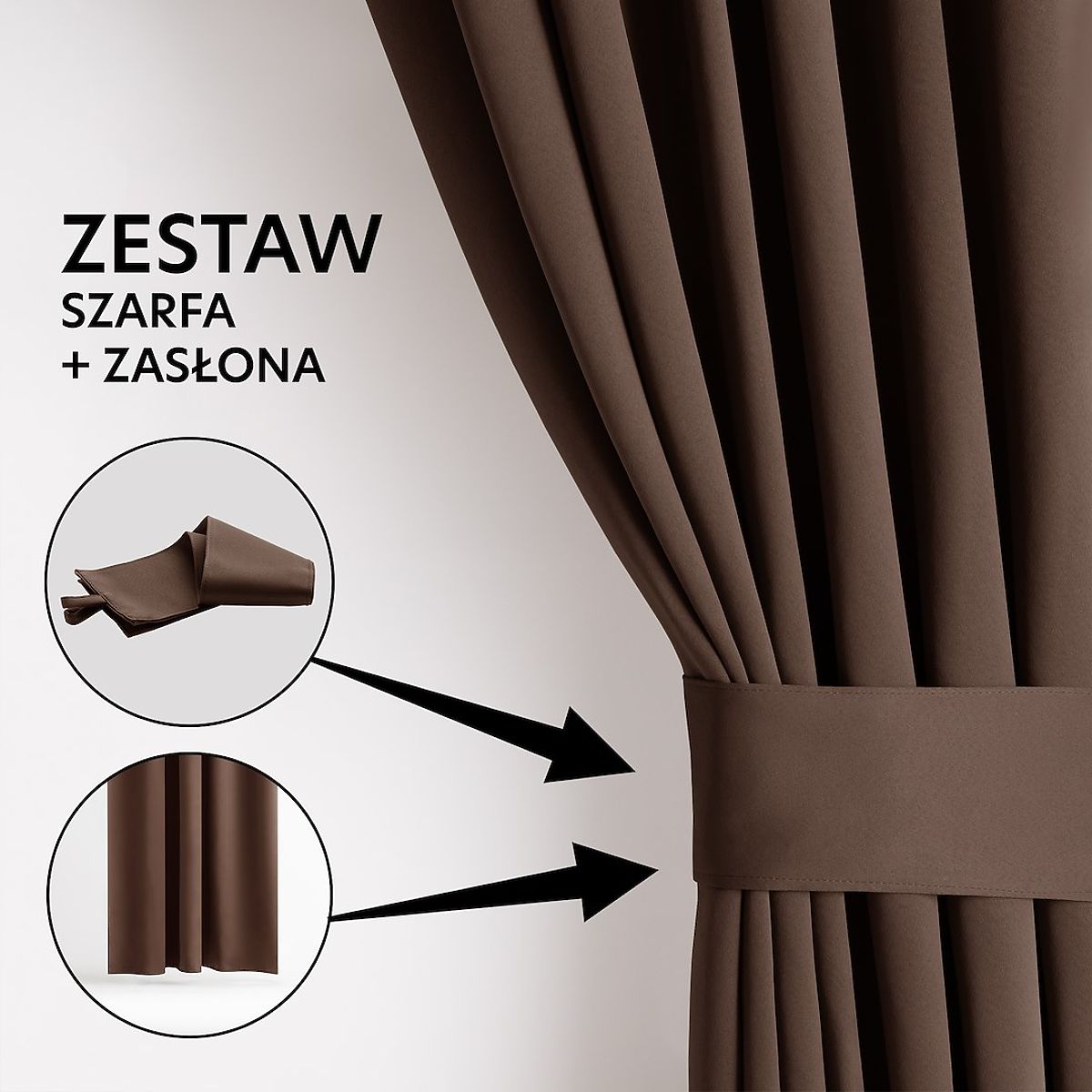 Brauner Blackout-Vorhang mit silbernen Ösen und Raffhalter. .. mehr