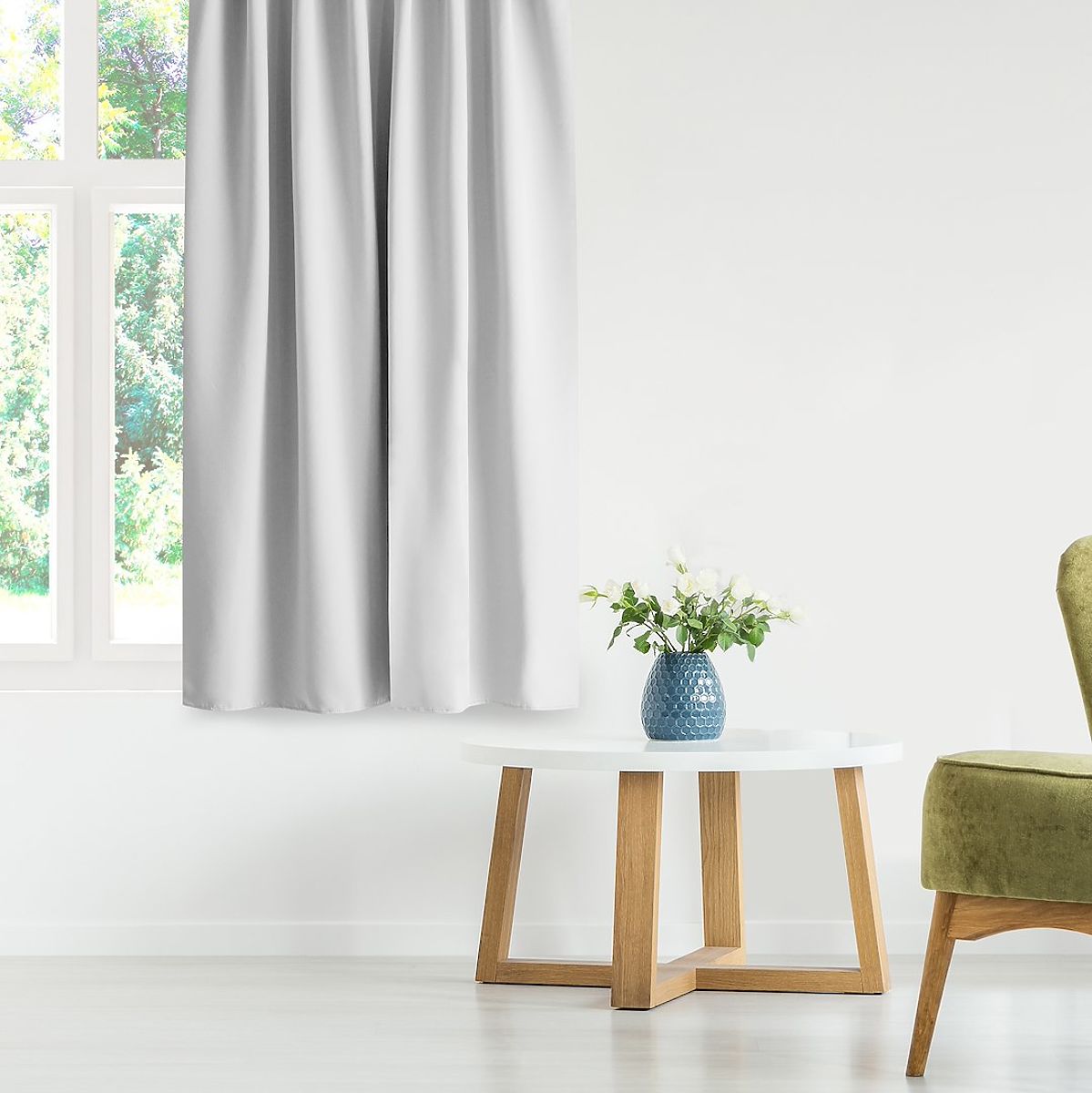 Weißer Blackout-Vorhang mit silbernen Ringen und 80% Verdunkelung. .. mehr