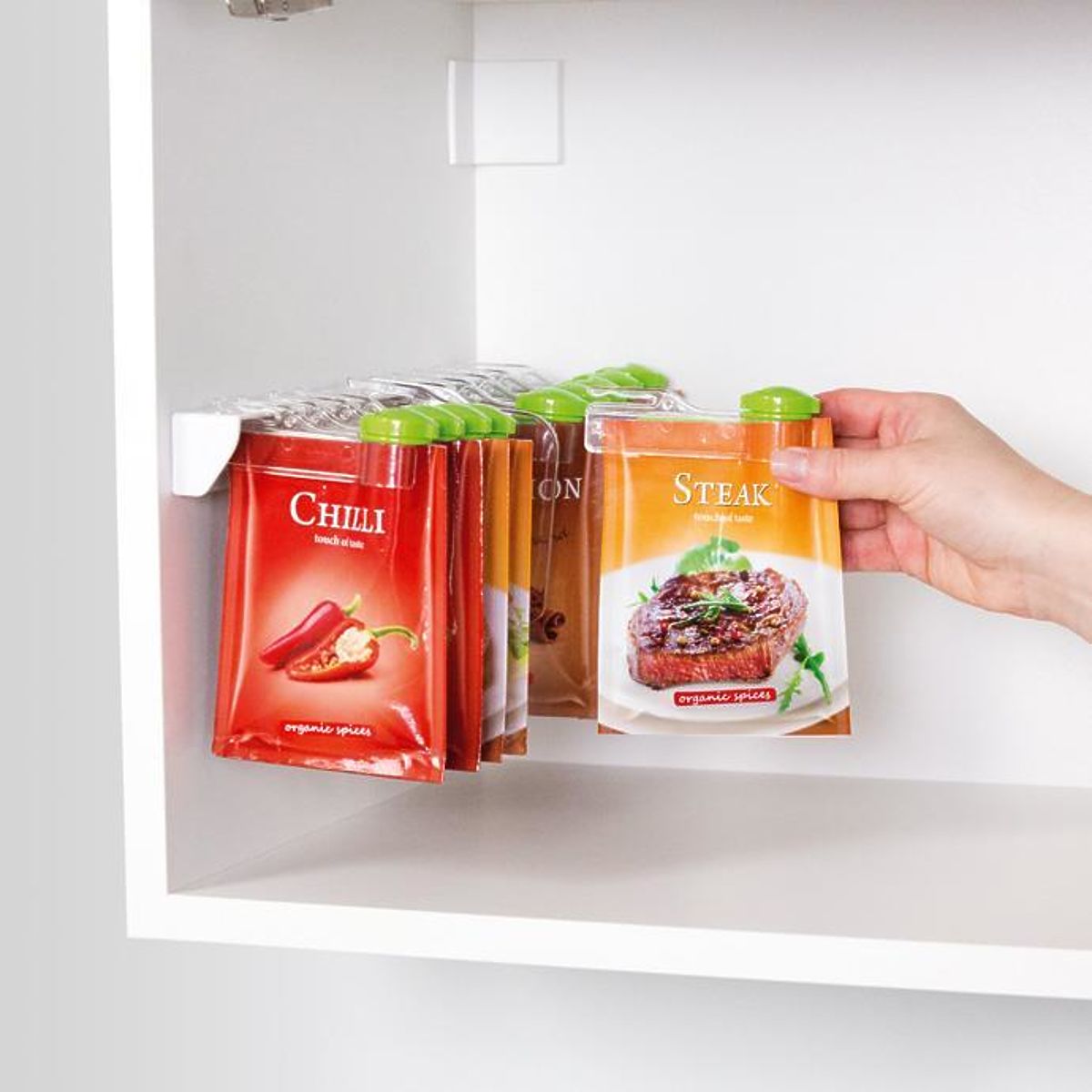 Verschließbarer Spender für Gewürzbeutel aus Kunststoff. .. mehr