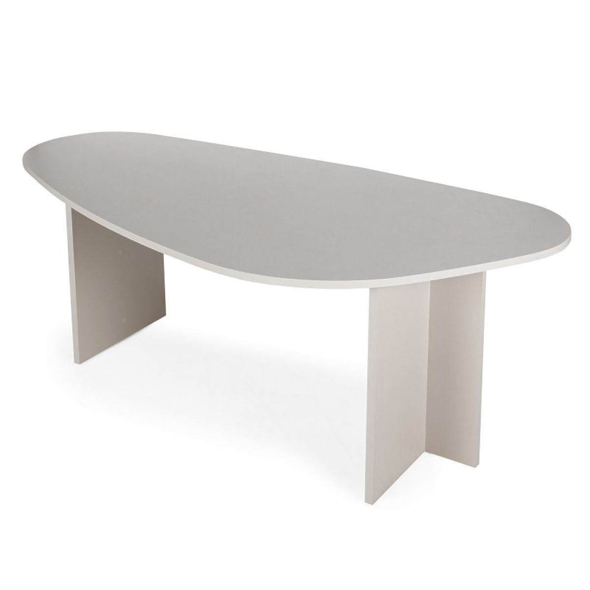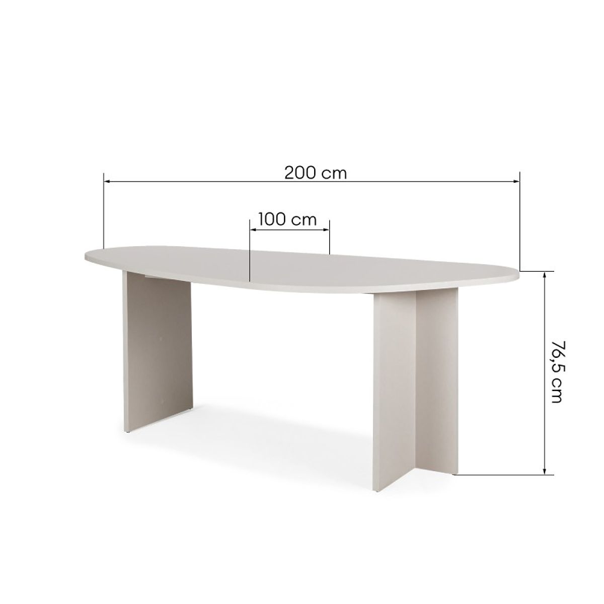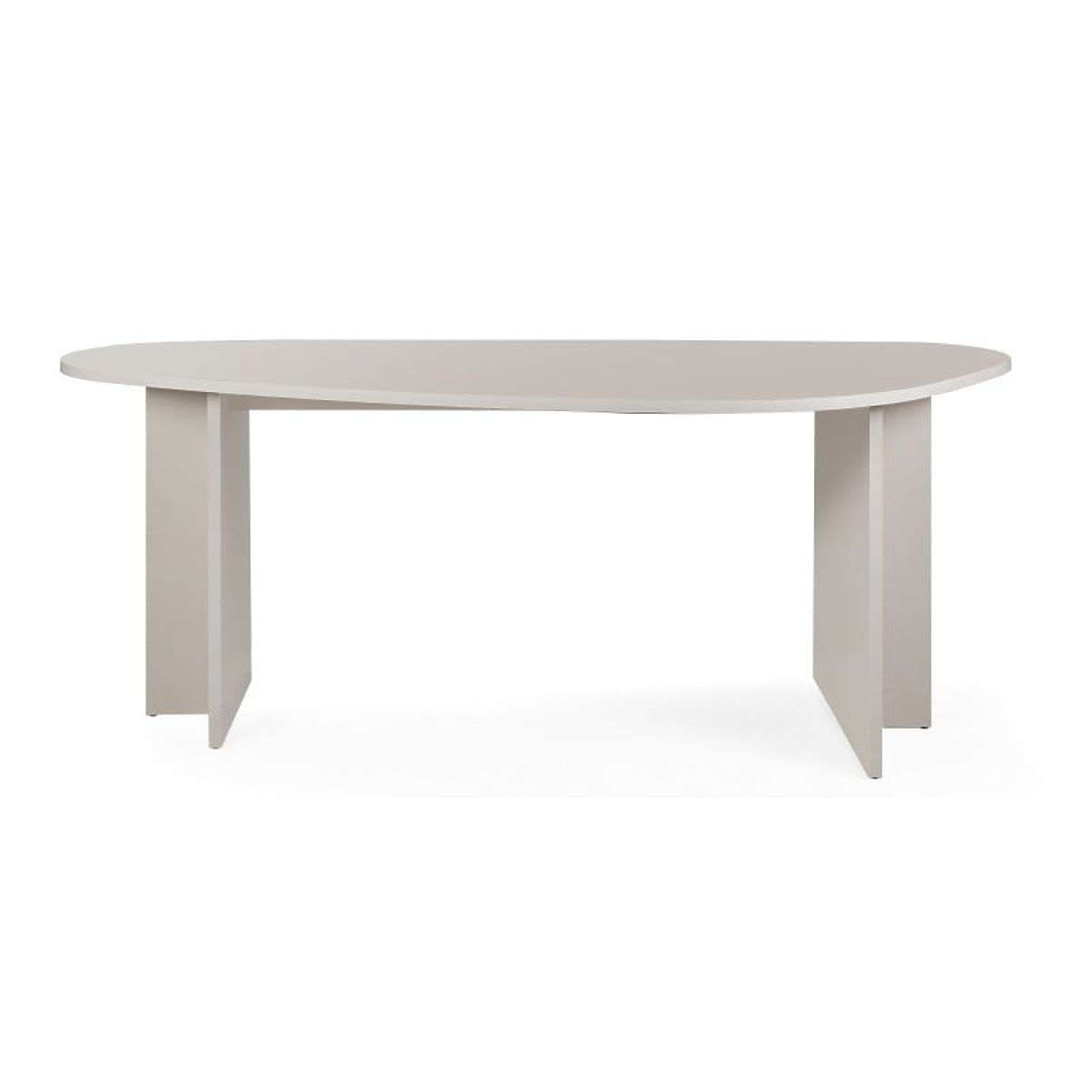 Der Esstisch Zeva begeistert mit seiner einzigartigen, unregelmäßigen Plattenform, die dem Interieur eine moderne und künstlerische Note verleiht. Hergestellt aus einer robusten, kaschmirfarbenen laminierten Platte, bietet er bequem Platz für bis zu zehn Personen und vereint Funktionalität mit gewagtem Design.