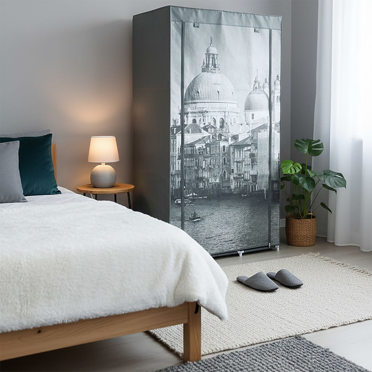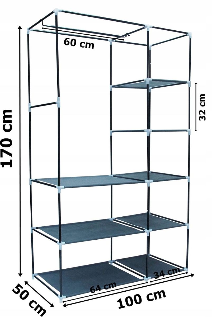 Leichte Textilschränke sind eine einfache und kostengünstige Lösung für die Aufbewahrung von Kleidung. Die Schränke haben einen Metallrahmen mit Kunststoffverbindern, sind einfach und schnell zu montieren und in vielen modischen Farben und Mustern erhältlich. Der Textilschrank ist auch für Personen geeignet, die häufig umziehen - er lässt sich in wenigen Minuten zusammenklappen. Dank der Reißverschlüsse an der Vorderseite des Schranks können die einzelnen Teile unabhängig voneinander geöffnet und geschlossen werden.